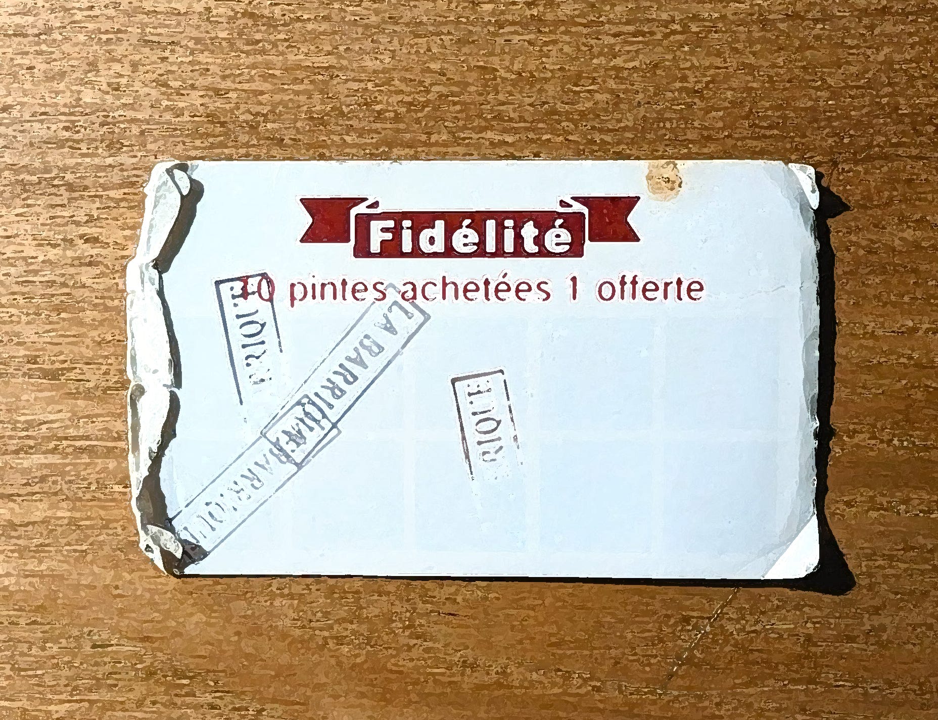 La Barrique used to have a loyalty program with a little card that they stamped every time you bought a cheap pint. If you bought ten then you got a free one, though I’m not sure if anyone ever actually did. This scheme has since been discontinued, meaning all those semi-stamped, dog-eared pieces of carton floating around the city are now worthless. La Barrique cancelling its own reward scheme is a very La Barrique thing to do.
