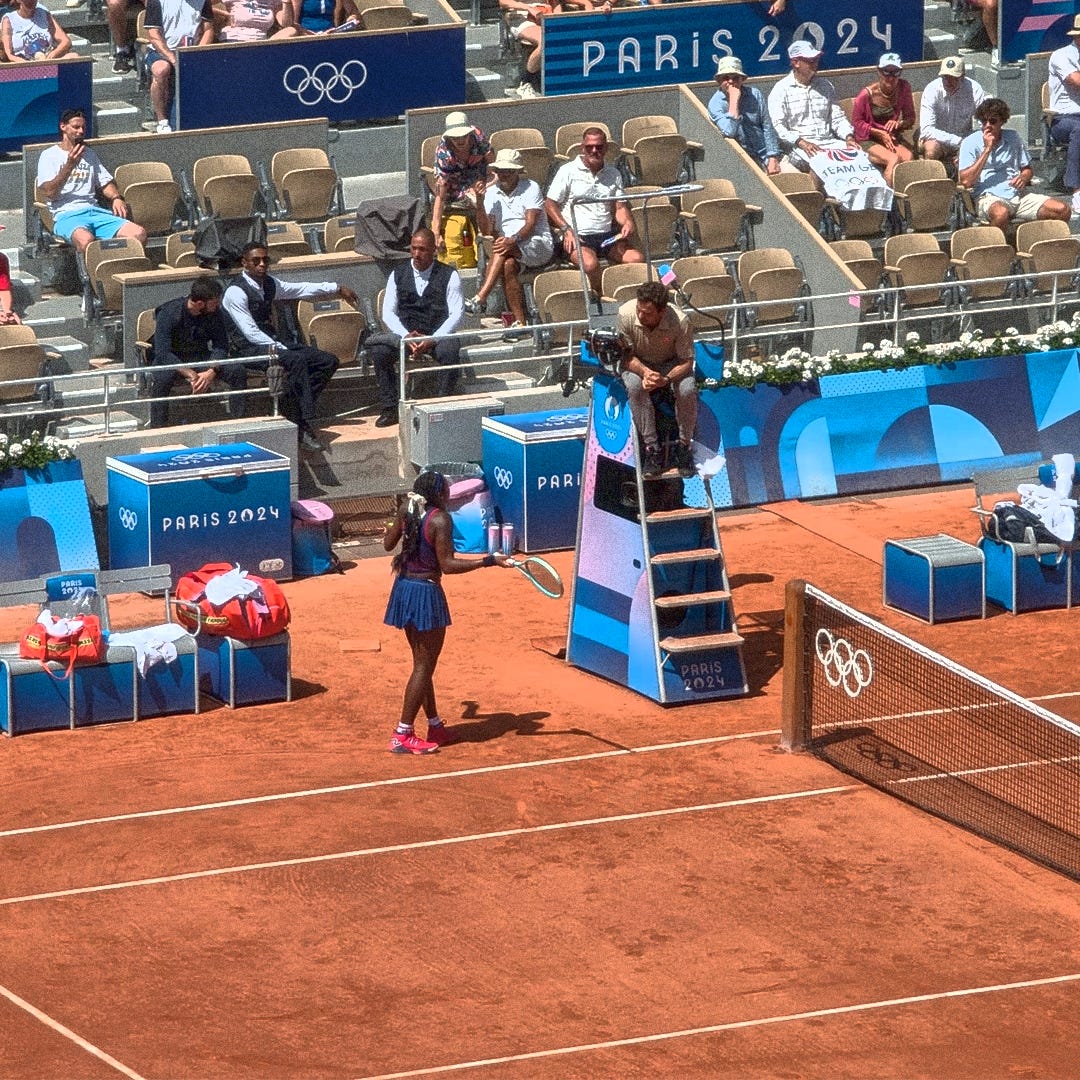 The world number two is up against Donna Vekic of Croatia and my view is from an angle that allows you to appreciate the absolute ferocity of the balls they are hitting at each other. Gauff seems to be running away with the match and at one point is leading Vekic by five games to two. Then there is a turning point.