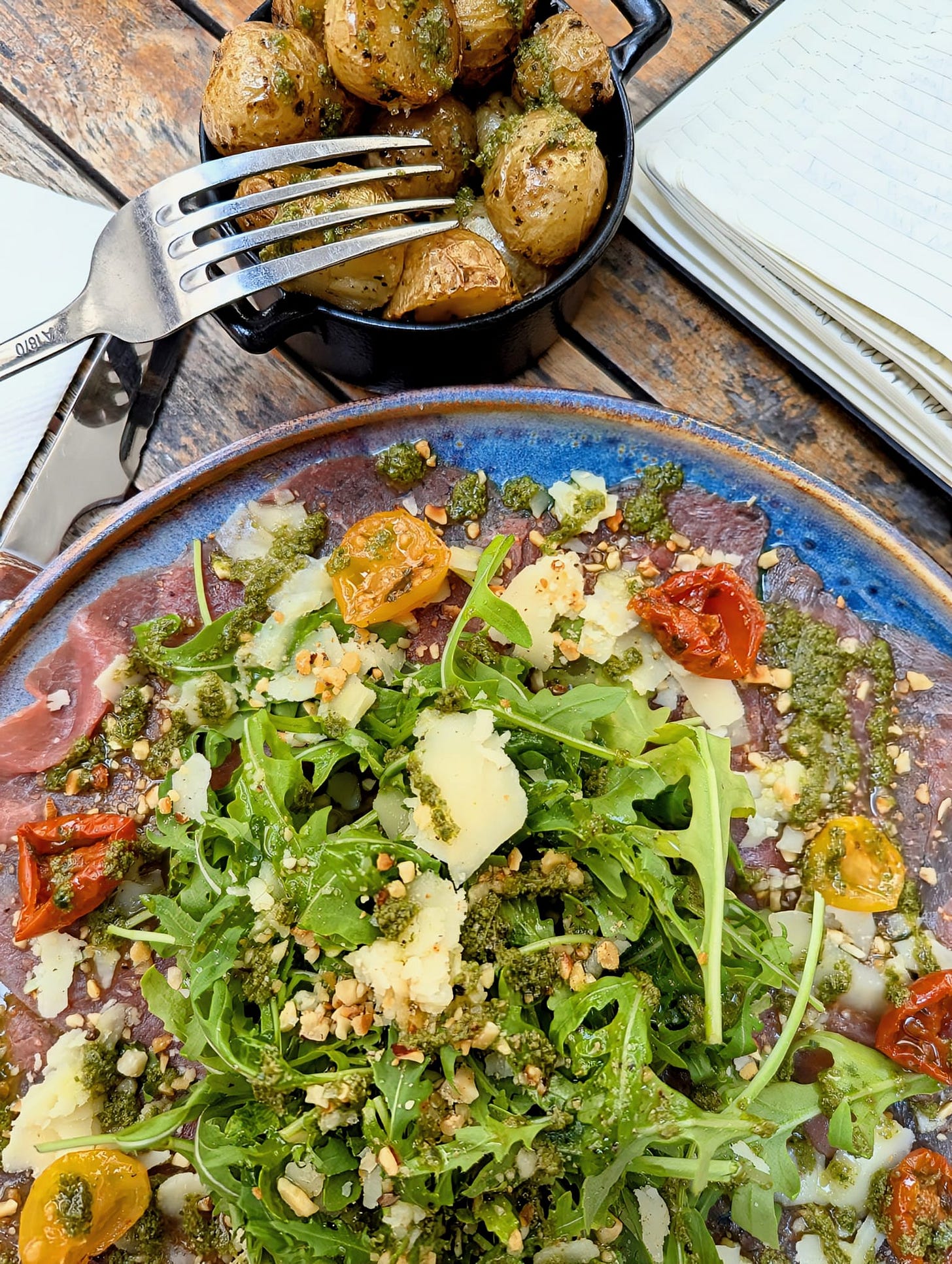 The subtlety of the pounded raw meat slices blended perfectly with the sharpness of the pesto. Finding crushed nuts mixed in with the peppery roquette salad gave satisfying moments of crunch. Each sip of wine was a fruity tannic envelope that brought out the juiciness of the Corsican tomatoes. “This is it…” I thought to myself. “The best Corscian meal I have eaten, and I’m not even in Corsica.” Then, at that very moment, I grew wary.