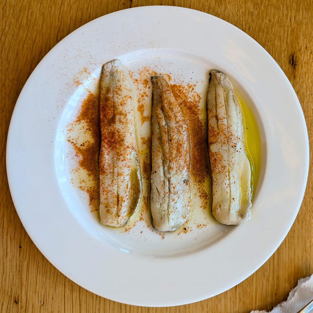 I order the sardines, which I assumed would be from a tin (no bad thing!) but turn out to be fresh, served in oil and dusted with some light paprika. I add a little tabasco for kick. Then the octopus which is charred and plated with baby boiled potatoes and a sauce made from Nduja, a spicy, spreadable Italian sausage. The barman let me try several wines to wash it down with, but inevitably I went for the Côtes de Gascogne, a no-nonsense dry white that goes with practically everything.