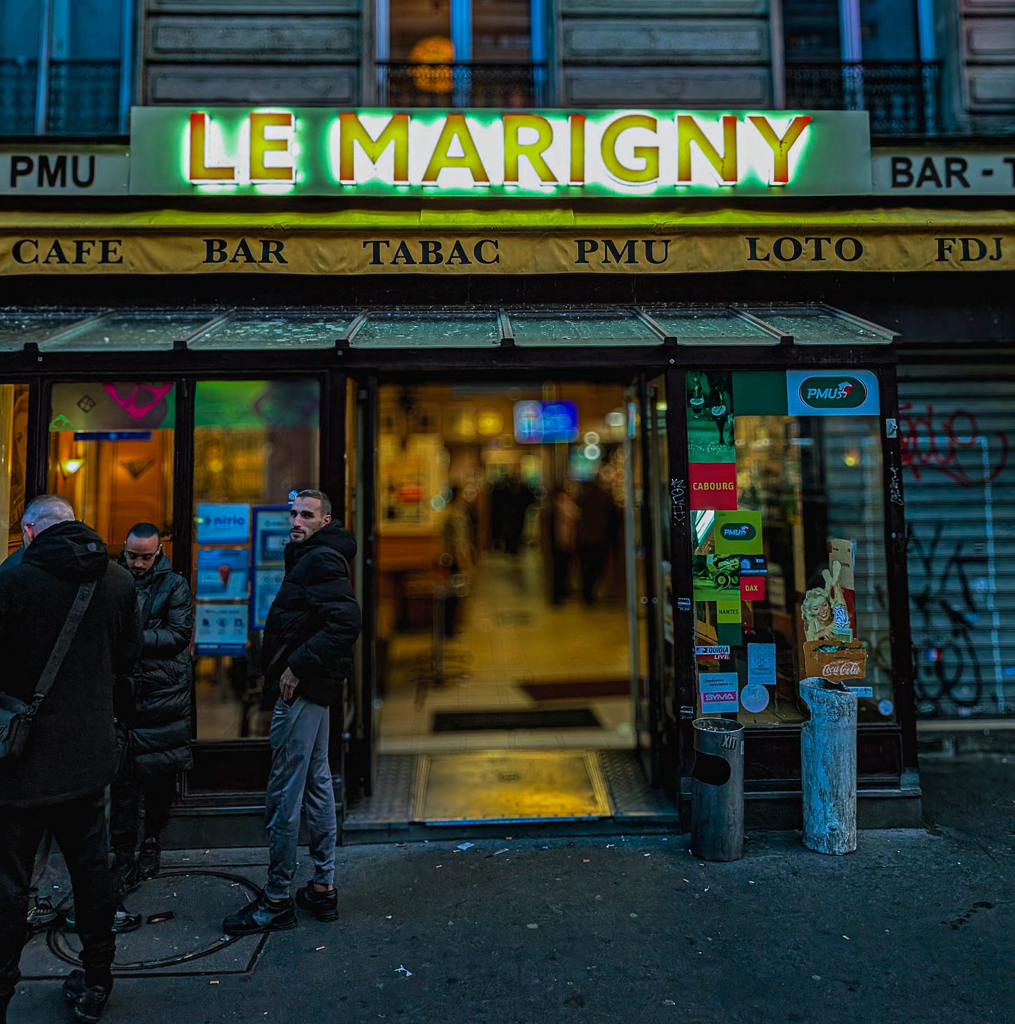 The Marigny is situated on Avenue de Flandre, opposite the Tang Frères Chinese supermarket and that tower block which looks like Mordor from Lord of the Rings if it were an enormous gay nightclub. Some PMU bars feel like cafes where you can also buy scratch cards, but this place is different. At The Marigny it seems as though the gambling was there first and the bar grew around it. What better place, then, to buy a Lotto ticket that’s sure to bag the jackpot.